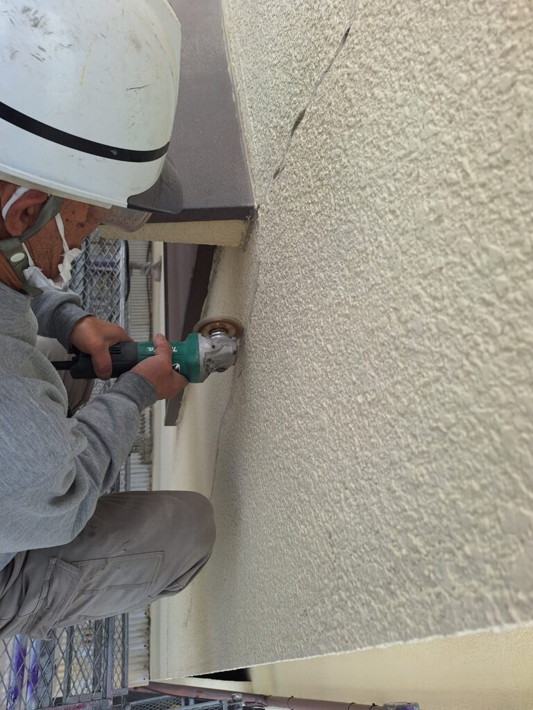 外壁の雨漏りで調査を行い、亀裂部分の補修を行っております