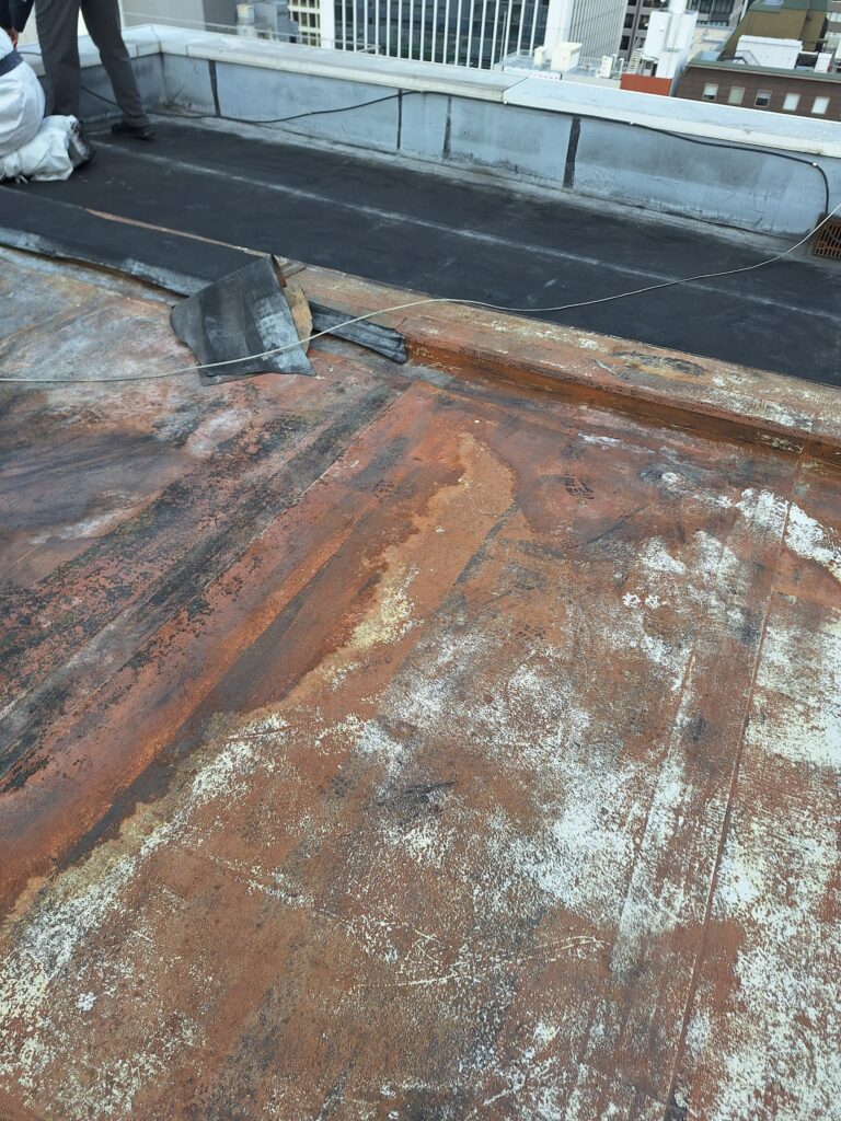 雨漏りしていた、ビルの屋上を改修始まりました