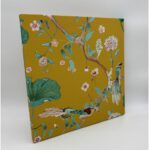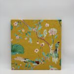 枝いっぱいに咲き誇る花々と、静かに佇む鳥たちを描いたデザイン。自然の生命力とやさしい華やぎを感じさせる情景を、絵画のように表現しました。