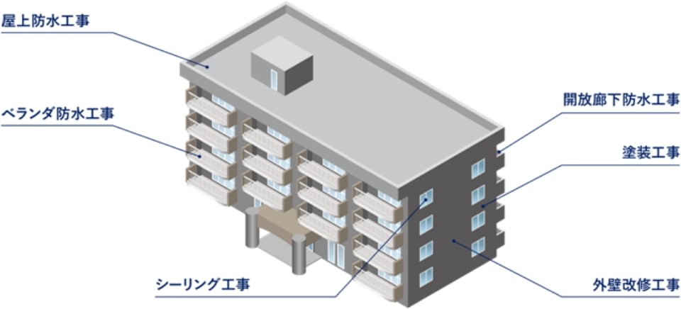 開放廊下は人の歩行や利用によって防水層の劣化が進行します。また、長時間の封鎖が難しいため施工期間が短い工法を選択する必要があります。